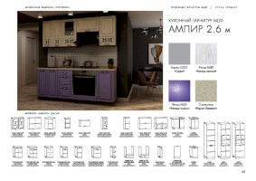Хотите готовить и проводить время на кухне с удовольствием? Укомплектуйте помещение красивой и удобной мебелью — закажите гарнитур «Ампир»! Комплект эстетичен и функционален. В него входят все необходимые для создания идеальных условий элементы. Холодные оттенки поддерживают праздничное, романтическое настроение. Немного гламура в обстановку вносят прорезные орнаменты на дверцах подвесных шкафчиков.