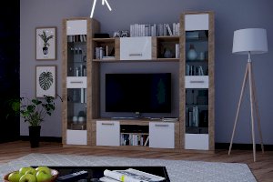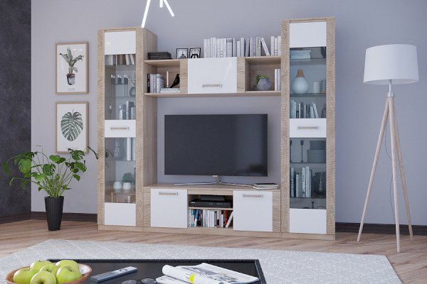 Модульная гостиная Элегия Дуб Сонома/Белый глянец (PDM)