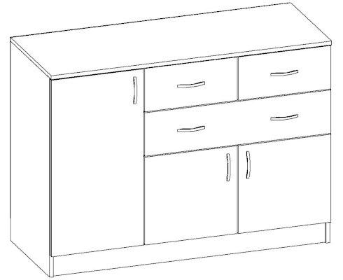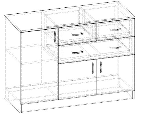 • Корпус, полки и фасады изготовлены из ЛДСП 16 мм с кромкой ПВХ 0,4 мм.