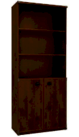 Шкаф разделен на 2 отделения: верхнее –открытое отделение с полками, нижнее – отделение за распашными дверями, за которыми расположена 1 полка