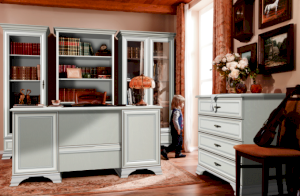 Кентаки - мебель классического стиля, отличающаяся природными цветами, отделкой фактурой, всегда актуально и востребована, она настолько универсальна, что без проблем впишется в любой современный дизайн. Стиль набора модульной мебели подчеркивается лакированной патинированной планкой в фасадах, карнизами - завершающим акцентом в зеркалах и высоких элементах набора, витиеватыми ручками. Четыре вместительных выдвижных ящика на металлических направляющих
