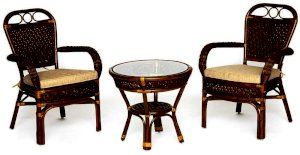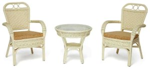 Комплект: стол кофейный со стеклом + 2 кресла + подушки