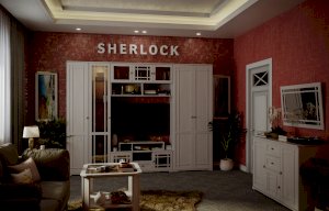 Широкий выбор модулей коллекции SHERLOCK помогает создать уютную гостиную с комфортным рабочим местом, что очень важно для маленькой квартиры. Вместительный 15 Стол письменный можно расположить между шкафами и навесить над ним 4 Шкаф навесной на любой удобной для Вас высоте. 5 Тумба МЦН – отличный вариант не только для хранения вещей, но и для размещения на ней телевизора. Шариковые направляющие тумбы обеспечивают плавность хода выдвижных ящиков. Большой выбор шкафов коллекции SHERLOCK дополнит и то, что 10 Шкаф угловой можно выбрать либо с фасадом Стандарт, либо с фасадом Зеркало. Все фасады модулей коллекции декорированы классическим переплетом из МДФ.