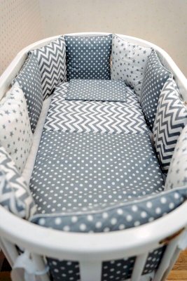 • 10 бортов-подушек со съёмными чехлами на молнии, размерами 34х30 см.