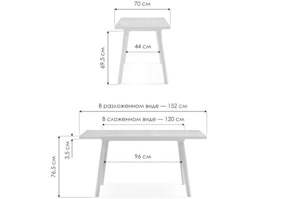 Длина разложенного столика, мм 1500