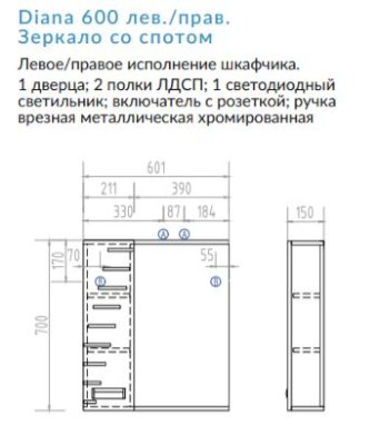 Зеркало Diana 600 со спотом (Виго) - за 8 588 руб. в Абакане. Купите на сайте mebelmarket-abakan.ru или по телефону 8(800)505-30-63 уже сегодня! Уточнить наличие, комплектацию, актуальную цену можно бесплатно у менеджера ежедневно. Закажите Зеркало Diana 600 со спотом (Виго) до конца акции! Доступна покупка в кредит, рассрочку. Доставим со склада или на заказ.