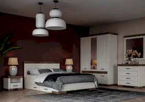 Кровать представлена в двух вариантах: с подъемным механизмом и с выдвижными ящиками.