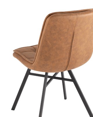 Классический обеденный стул без подлокотников на металлических ножках плоской формы. Мягкая обивка выполнена из экокожи  - прочного износостойкого материала, который неприхотлив в уходе и быстро восстанавливает форму. Внутренняя сторона сиденья и спинки украшена геометричной строчкой.