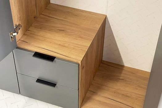 Материал: ЛДСП 16 мм, Декоративная вставка МДФ 19 мм, пленка ПВХ, Профили торцевые МДФ полукруглые