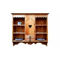 Классический навесной шкаф из прованской коллекции. Шкаф удобен для хранения посуды, салфеток, бокалов. Он прекрасно сочетается с другими элементами коллекции. По бокам - две открытые ниши, в центре шкафа дверь с полкой и два малых ящика.