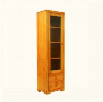 Этот однодверный шкаф имеет четыре полки за дверью из прозрачного стекла в деревянной раме. В нижней части витрины расположены два ящика с плавным механизмом выдвижения.  Эта простая и удобная конструкция в силу своей лаконичности будет всегда популярна и актуальна. Массив сосны, из которого изготовлена витрина, позволит мебели сохранить свои высокие эксплуатационные свойства и безупречный внешний вид на протяжении многих лет.