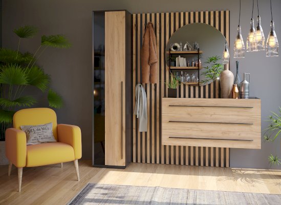 • Вертикальная стенка из ЛДСП 16 мм с рейками из профиля МДФ