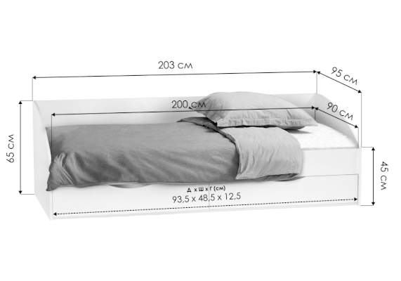 Размер спального места, см 90х200