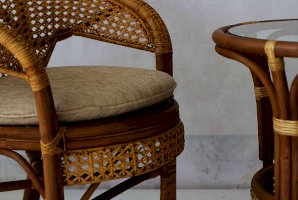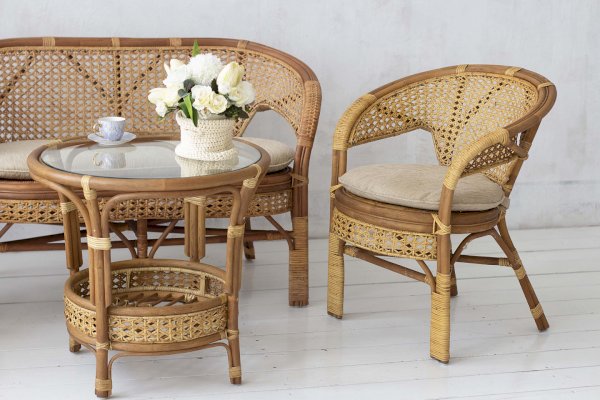 Кресло из натурального ротанга с подушкой и плетеной спинкой Пеланги.