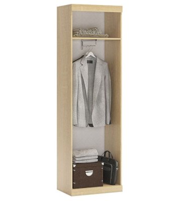 Шкаф 2-створчатый «Макси» — это небольшой по габаритам шкаф, выполнен  в строгом европейском стиле, функционален и лаконичен. Выдвижная штанга для одежды и одна полка под вещи — все что нужно для маленькой уютной гостиной.  Сборка корпуса шкафа позволяет менять двери местами (левое/правое открывание).